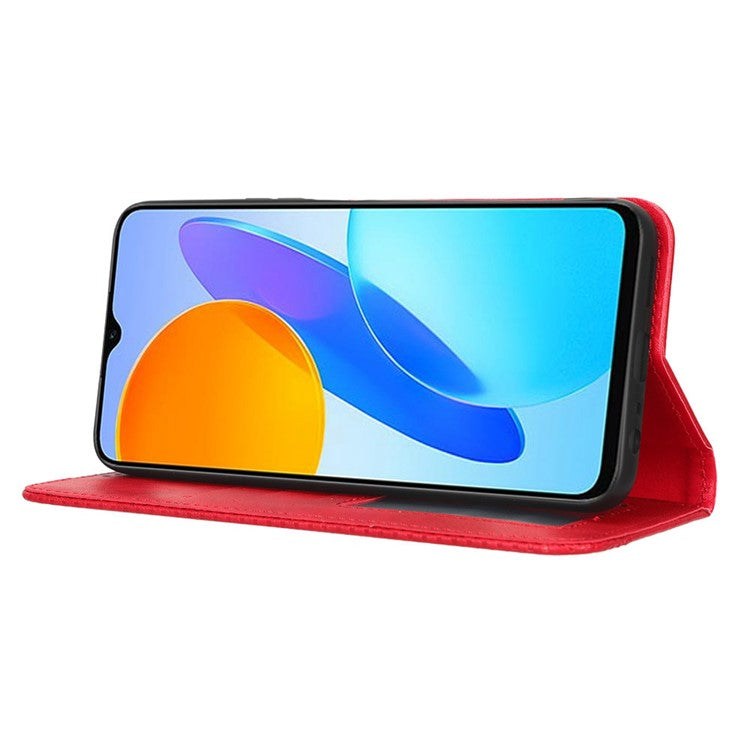 Drop-proof Cell Phone Cover For Honor 70 Lite 5G / X6 4G / Honor Play6C / X8 5G Magnetic Auto Closing Folio Flip Leather Wallet Case Retro Imprint Pattern Phone Shell with Stand - Red