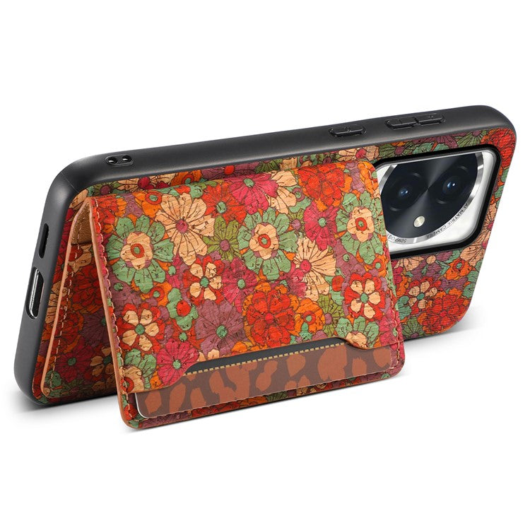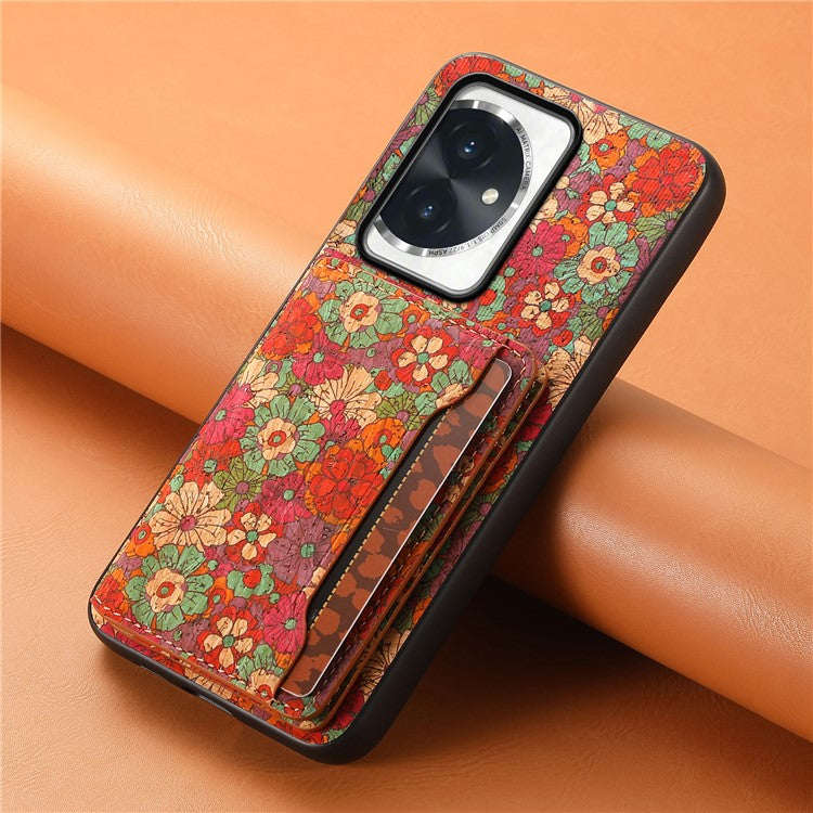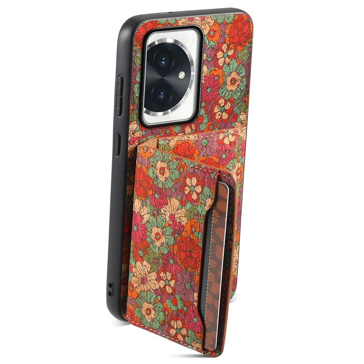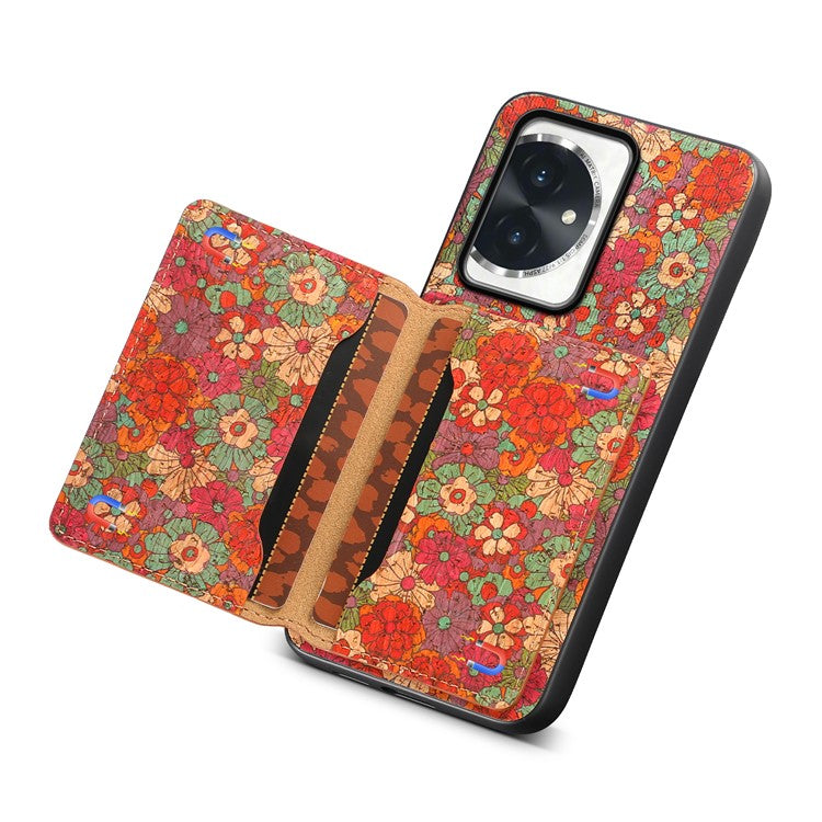 For Honor 100 5G Case Floral Pattern Card Slot Kickstand PU+TPU+PC Phone Shell - Summer / Red