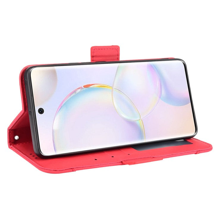 For Honor 50 Special Flip Phone Case Multiple Card Slot Design PU Leather Wallet Cover Protector - Red
