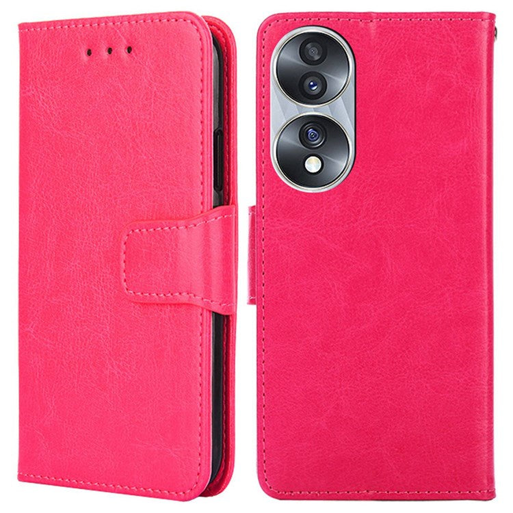 For Honor 70 5G Anti-fall PU Leather Wallet Case Stand Function Magnetic Closure Shockproof Flip Folio Cover - Rose