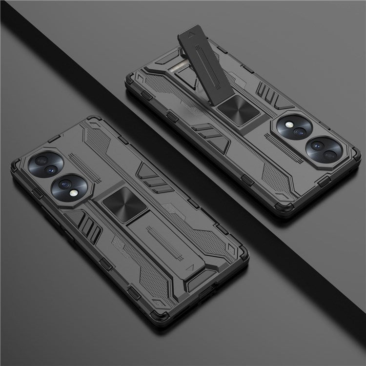 For Honor 70 5G Phone Case Kickstand Hard PC Soft TPU Dual Layer Anti-Slip Rugged Protective Cover - Black