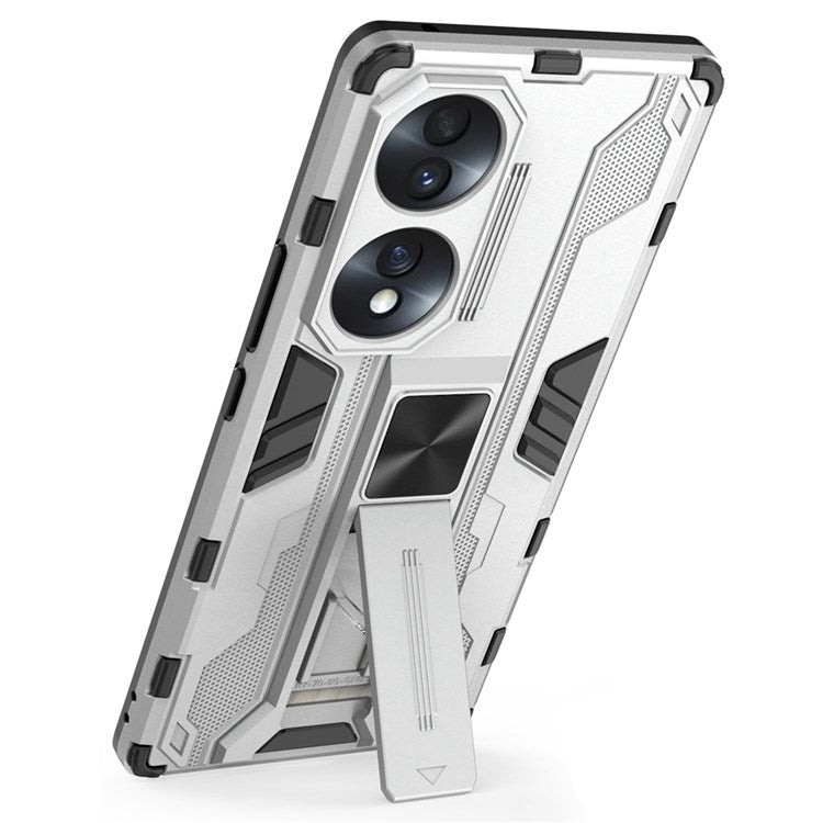For Honor 70 5G Phone Case Kickstand Hard PC Soft TPU Dual Layer Anti-Slip Rugged Protective Cover - Silver