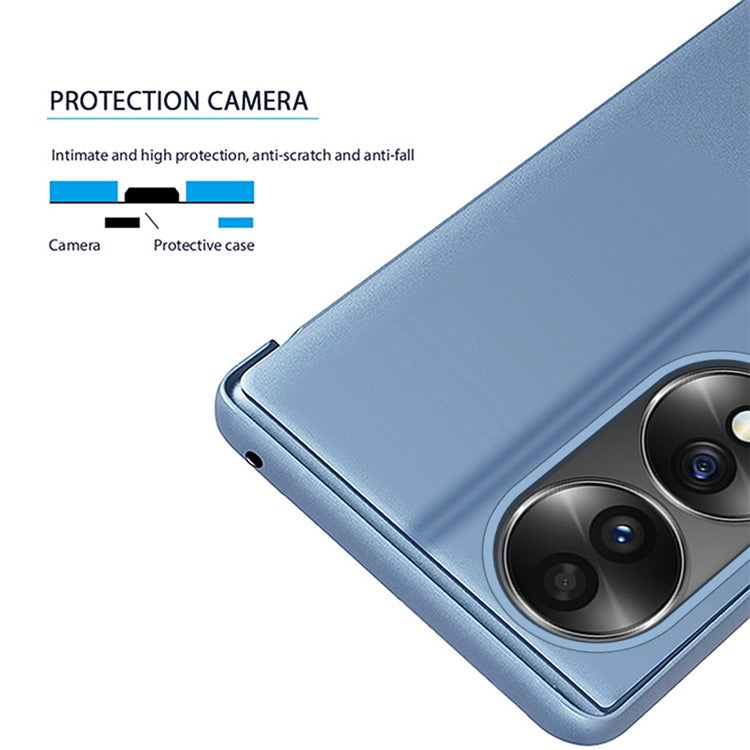 For Honor 70 5G PU Leather Mirror Surface Electroplating Cover View Window Full Body Protective Phone Stand Case - Purple