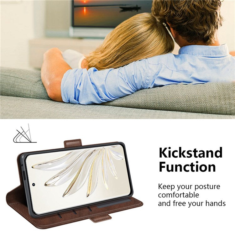 For Honor 70 5G PU Leather Wallet Case Dual Magnetic Clasp Stand Flip Protective Cover - Brown