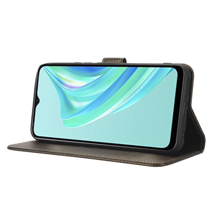 For Infinix Hot 20i 4G X665C / X665E Diamond Texture PU Leather Case Full Protection Stand Wallet Phone Cover with Strap - Brown