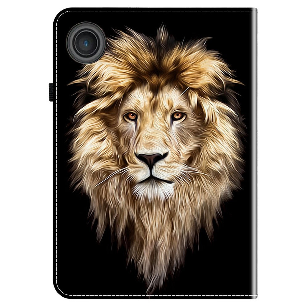 For Lenovo Tab TB311FU Leather Case Pattern Printed Stand Tablet Cover with Card Slots - Lion Head