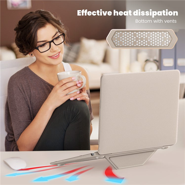 For MacBook Air 13 inch (2020) / (2018) A2337 M1 A2179 A1932 Laptop Case Anti-Slip PC+PU Leather Flip Cover - Gold