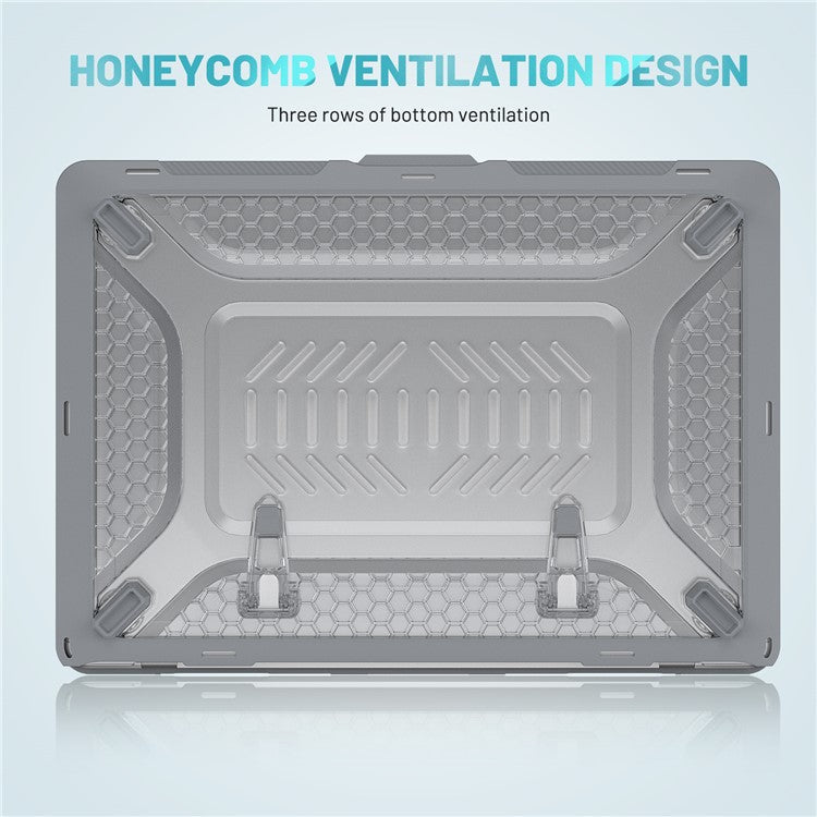 For MacBook Air 13 inch (2025) / (2024) / (2022) M2 A2681 Heat Dissipation Laptop Case Shockproof Hard PC Soft TPU Kickstand Cover - Grey