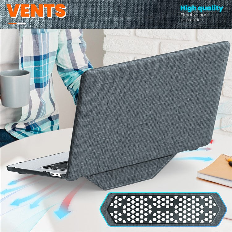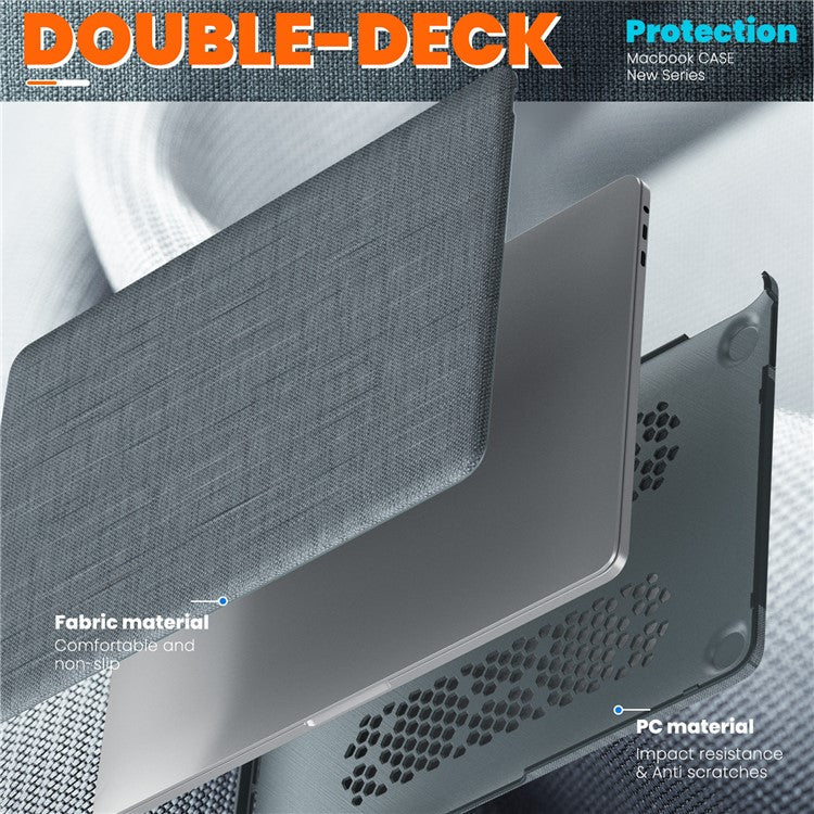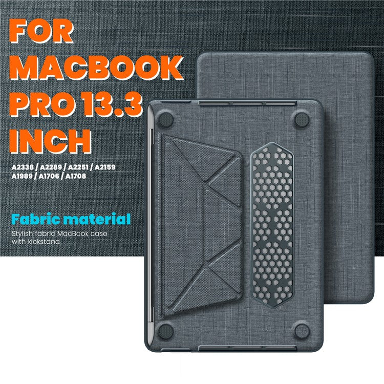 For MacBook Pro 13 inch (2022) / (2020) / (2018) A2338 M1 / M2 A2289 A2251 A2159 A1989 A1706 A1708 Laptop Case Anti-Slip PC+Cloth Flip Cover - Grey