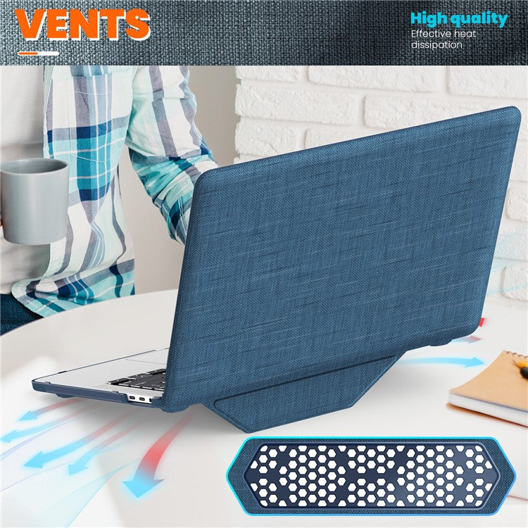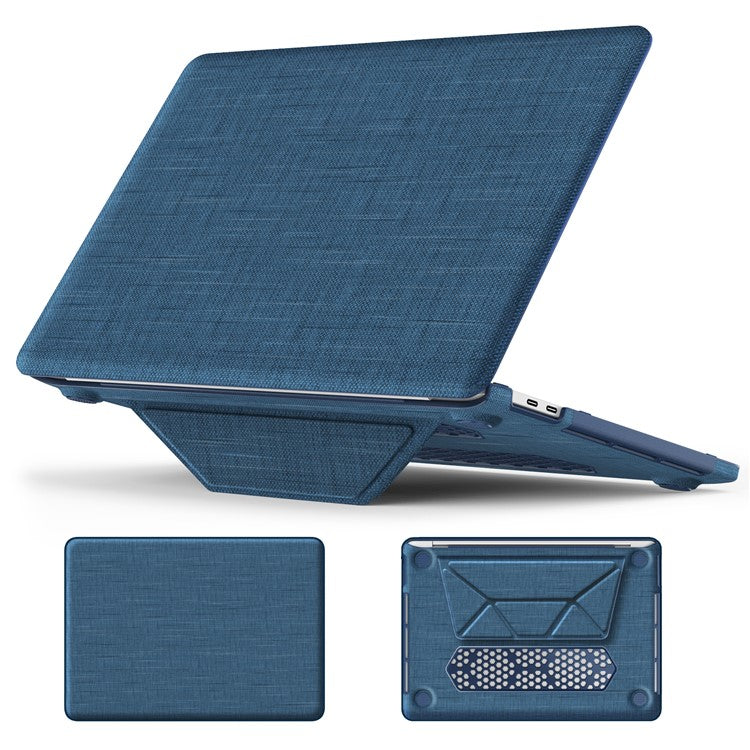 For MacBook Pro 13 inch (2022) / (2020) / (2018) A2338 M1 / M2 A2289 A2251 A2159 A1989 A1706 A1708 Laptop Case Anti-Slip PC+Cloth Flip Cover - Navy Blue