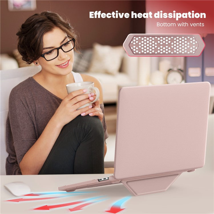 For MacBook Pro 13 inch (2022) / (2020) / (2018) M1 / M2 A2289 A2251 A2159 A1989 A1706 A1708 Laptop Case Anti-Slip PC+PU Leather Flip Cover - Pink