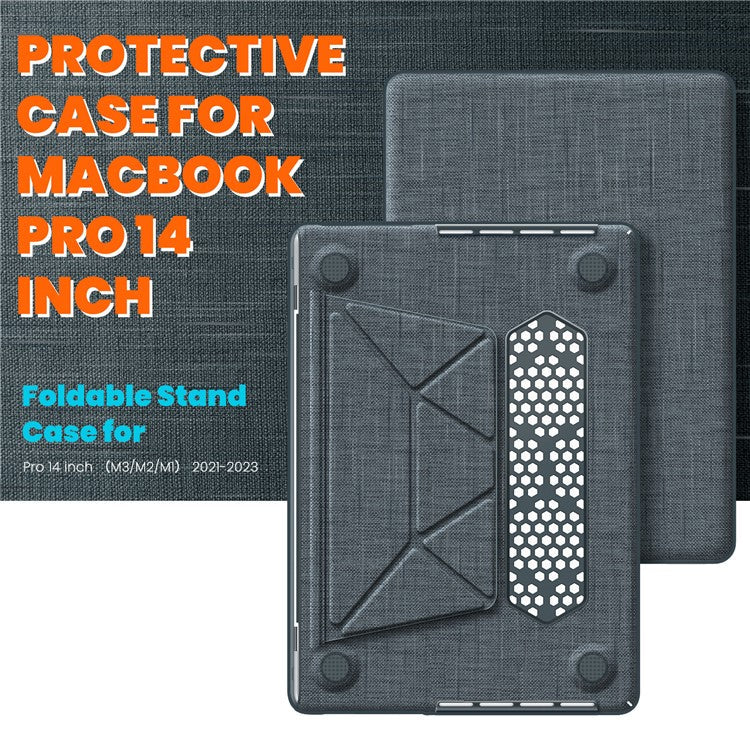 For MacBook Pro 14 inch (2023) (2021) A2442 M1 Pro / M1 Max / A2779 / M3 A2918 A2992 Laptop Case Anti-Slip PC+Cloth Flip Cover - Grey