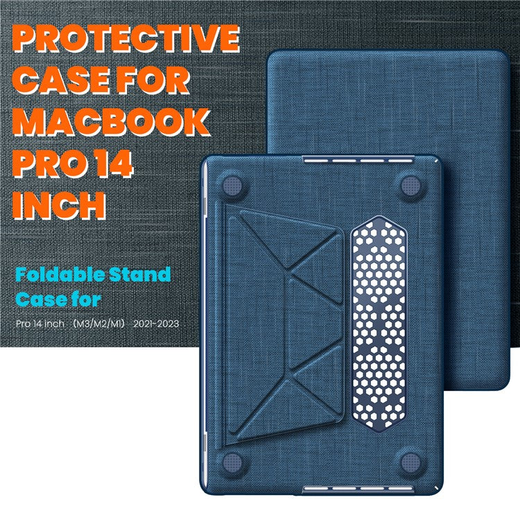 For MacBook Pro 14 inch (2023) (2021) A2442 M1 Pro / M1 Max / A2779 / M3 A2918 A2992 Laptop Case Anti-Slip PC+Cloth Flip Cover - Navy Blue