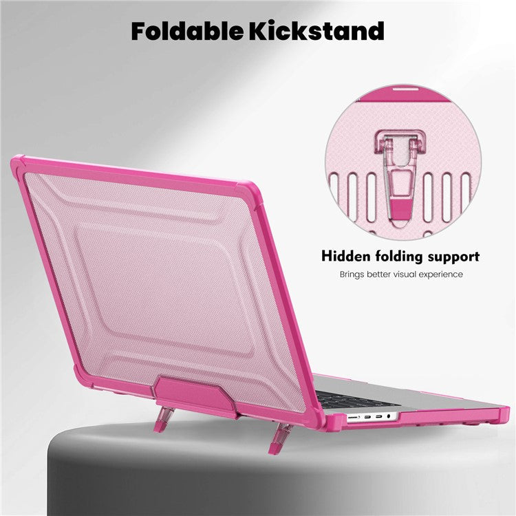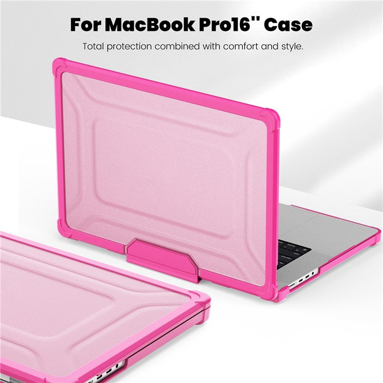 For MacBook Pro 16 inch (2024) (2023) (2021) (A2485 M1 Pro / M1 Max / A2780) Anti-Slip Laptop Case Heat Dissipation PC+TPU Kickstand Cover - Rose