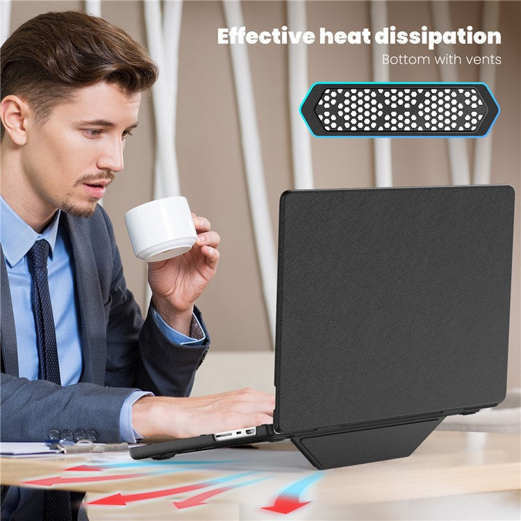 For MacBook Pro 16 inch (2024) / (2023) / (2021) A2485 M1 Pro / M1 Max / A2780 / M3 A2991 Laptop Case Anti-Slip PC+PU Leather Flip Cover - Black