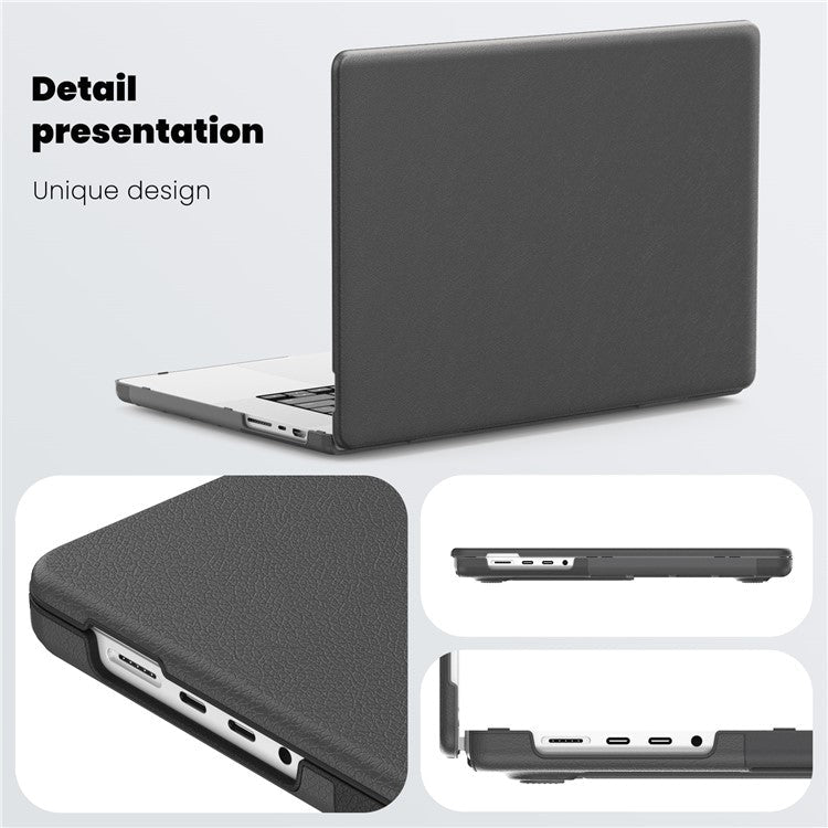 For MacBook Pro 16 inch (2024) / (2023) / (2021) A2485 M1 Pro / M1 Max / A2780 / M3 A2991 Laptop Case Anti-Slip PC+PU Leather Flip Cover - Grey