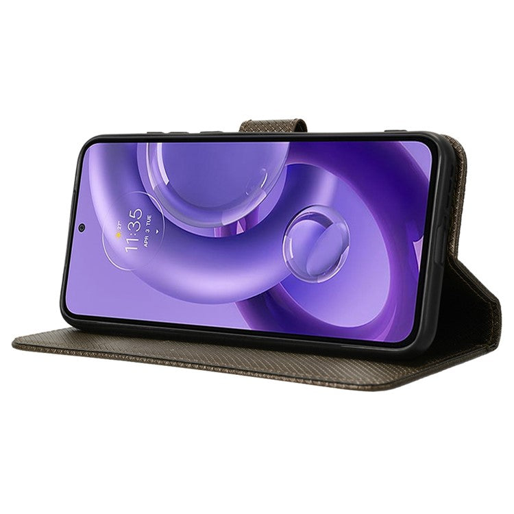 For Motorola Edge 30 Neo 5G / Edge 30 Lite 5G Diamond Texture Book Style Phone Wallet Cover PU Leather Stand Case - Brown