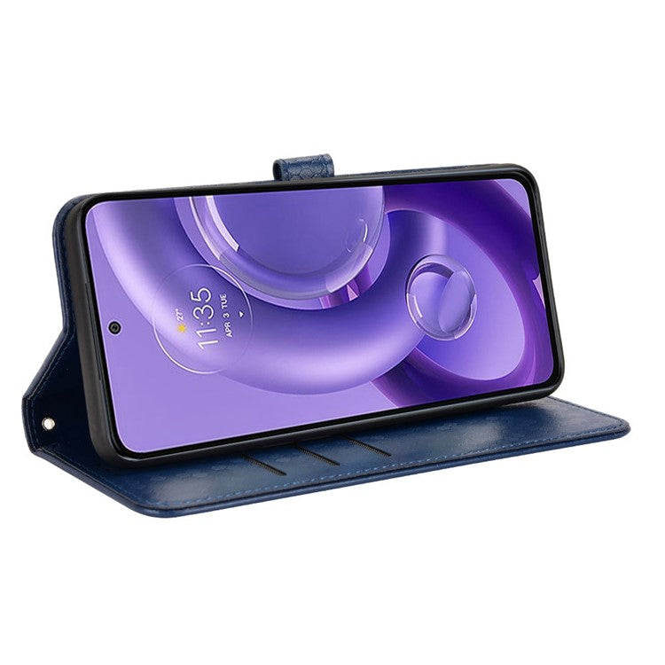For Motorola Edge 30 Neo 5G / Edge 30 Lite 5G Foldable Stand Wallet Case Dot Pattern Imprinted TPU+PU Leather Flip Phone Shell - Dark Blue