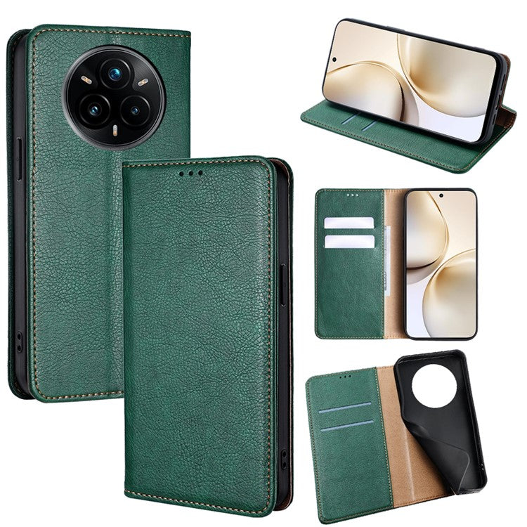 For Realme 14 Pro+ 5G Case Wallet PU Leather Magnetic Auto-Absorbed Phone Cover - Green