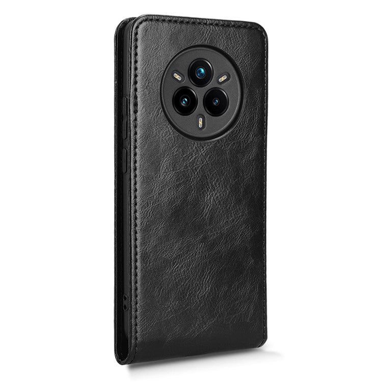 For Realme 14 Pro+ 5G Case with Card Slot Magnetic Vertical Flip Leather Phone Cover - Black