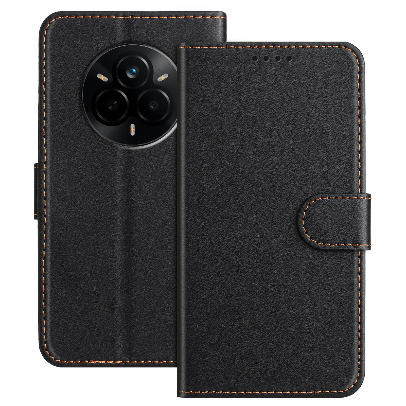 For Realme 14 Pro 5G Leather Case Wallet Stand Solid Color Anti Drop Phone Cover - Black