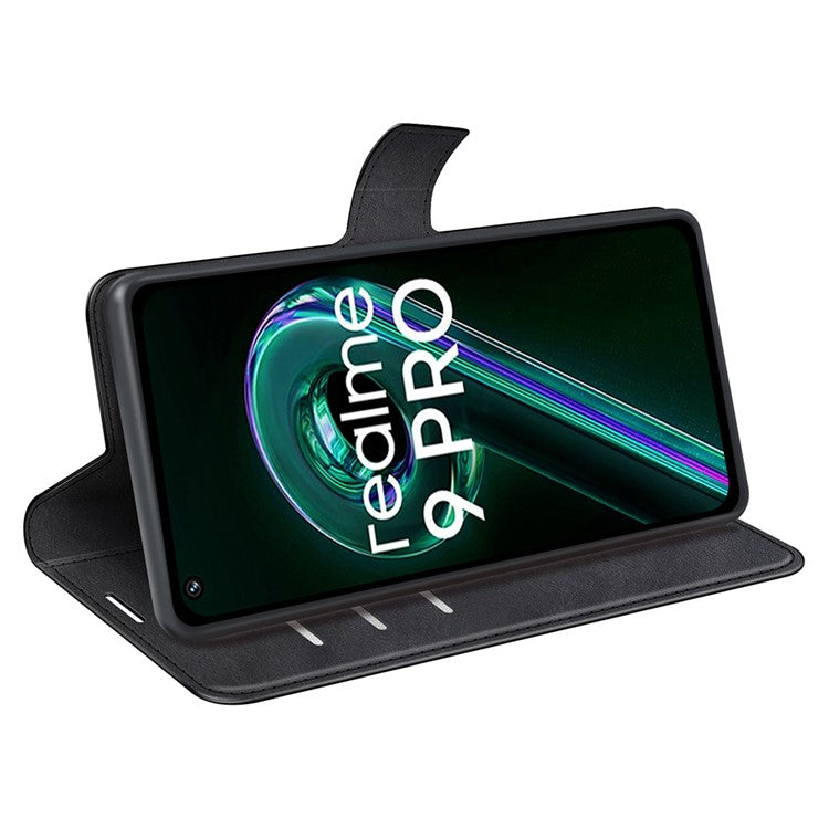 For Realme 9 Pro 5G / 9 5G / V25 / OnePlus Nord CE 2 Lite 5G Anti-scratch Textured PU Leather Wallet Phone Case Adjustable Stand Flip Phone Cover - Black