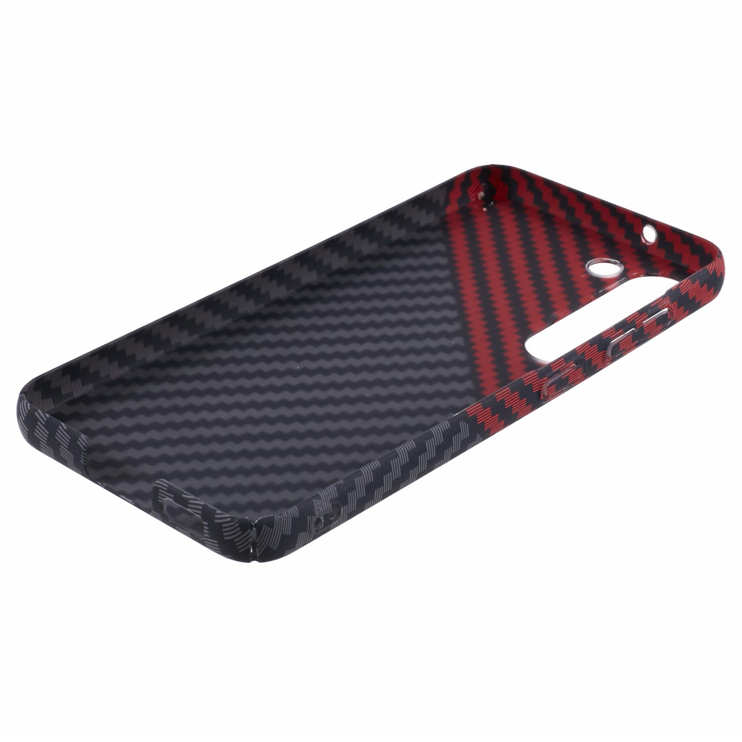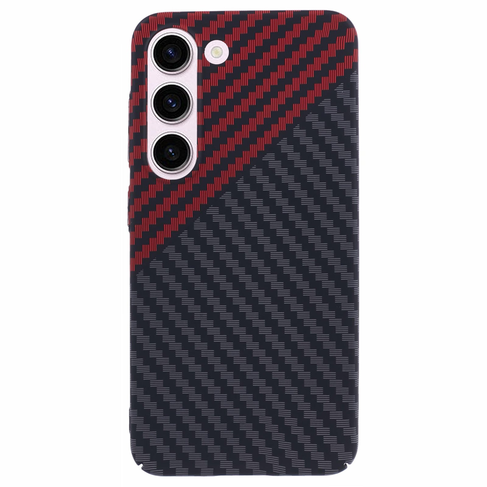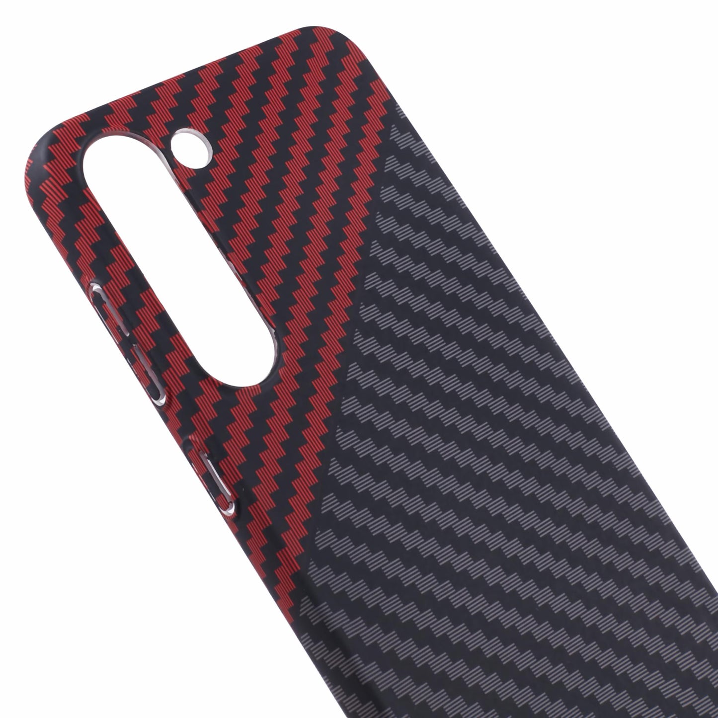 For Samsung Galaxy S24 Case Carbon Fiber Texture Splicing PC Phone Cover - Black+Red