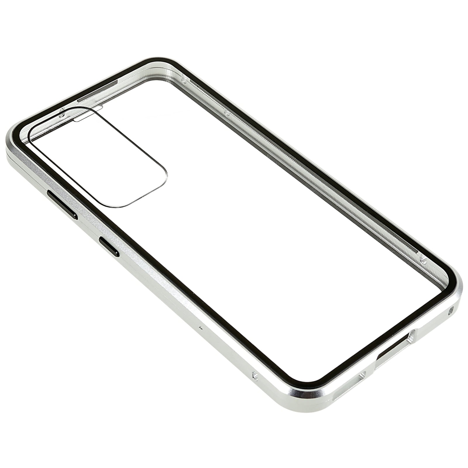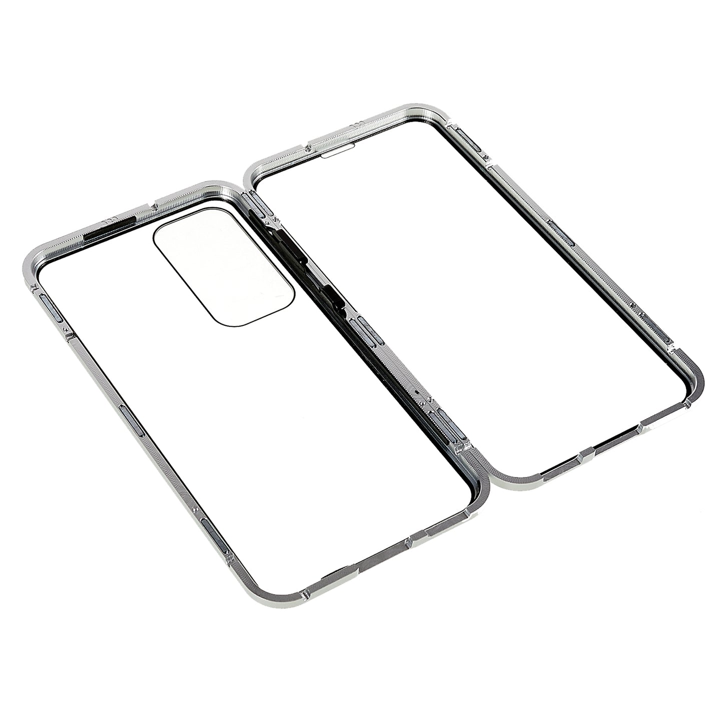 For Samsung Galaxy S24 Magnetic Case Double-Sided Tempered Glass Metal Frame Phone Cover - Silver