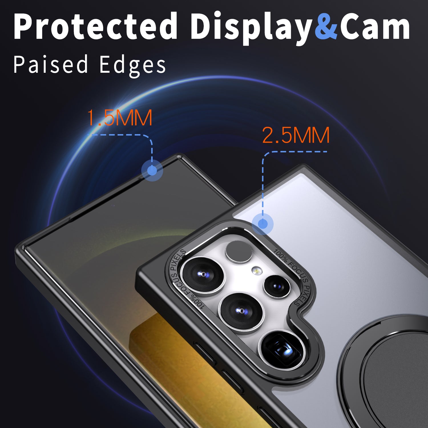 - 1.5mm raised edge of screen and 2.5mm raised edge of camera lens prevents scratches on a flat surface
