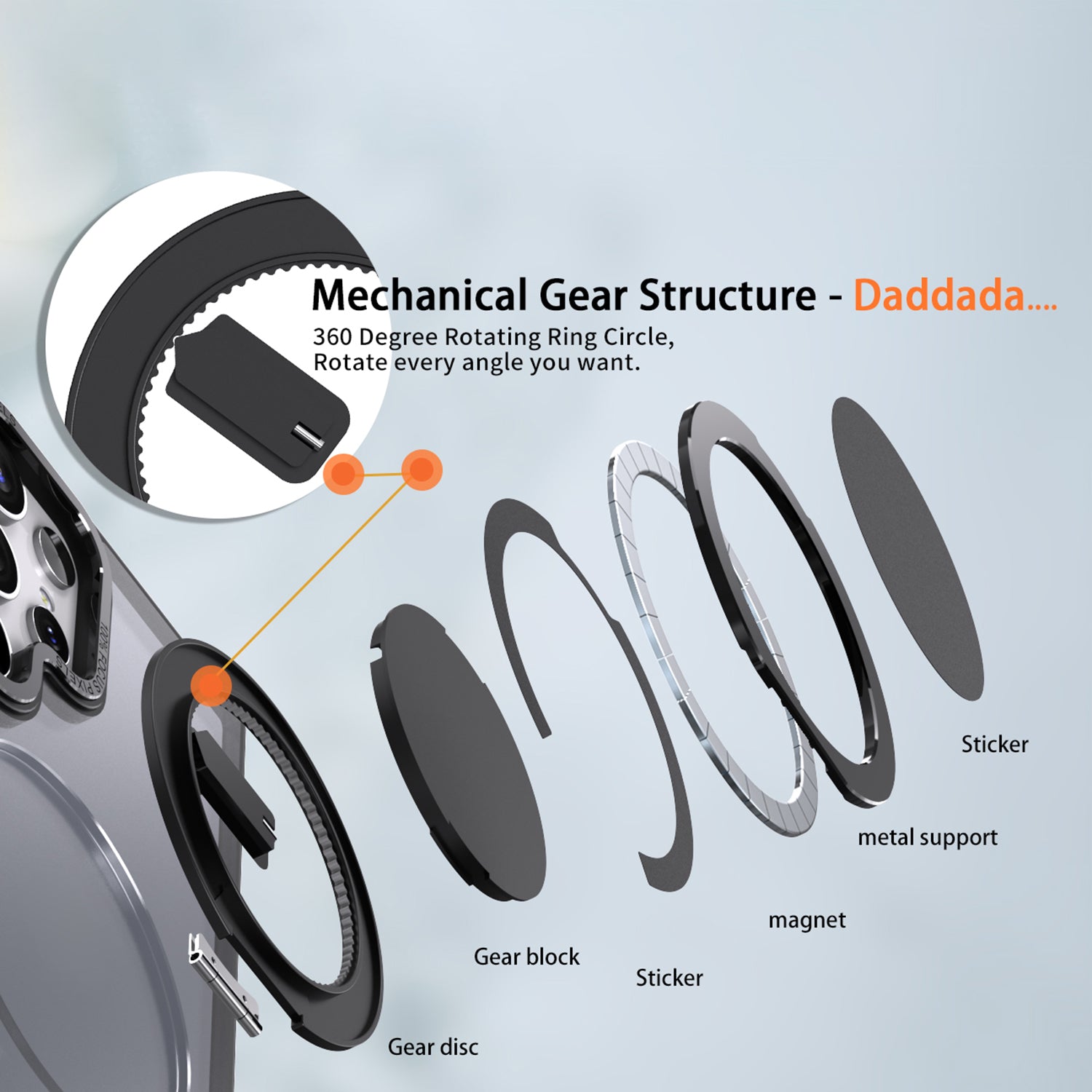 - It can rotate 360 degrees, allowing it to be securely positioned at any angle, suitable for both horizontal and vertical placement anywhere and anytime, allowing for versatile positioning