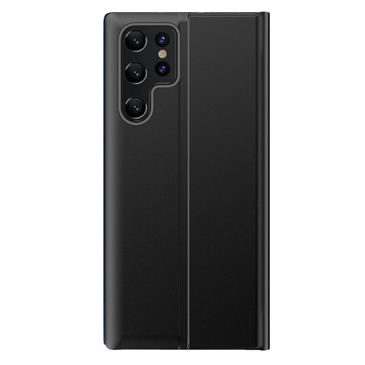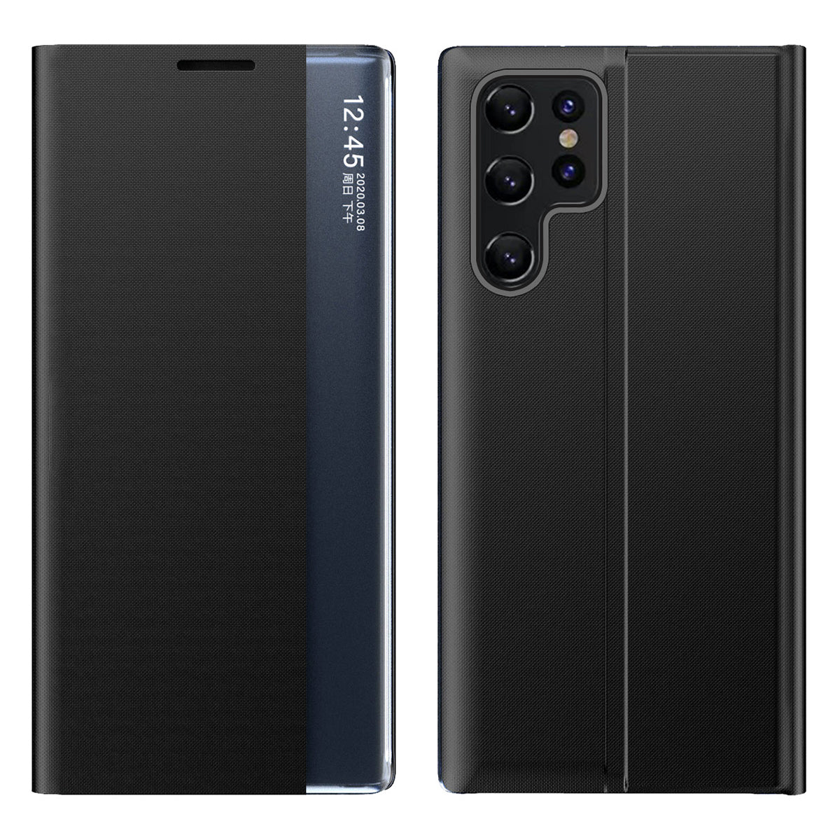 For Samsung Galaxy S24 Ultra Case PC + PU Leather View Window Flip Stand Phone Cover - Black