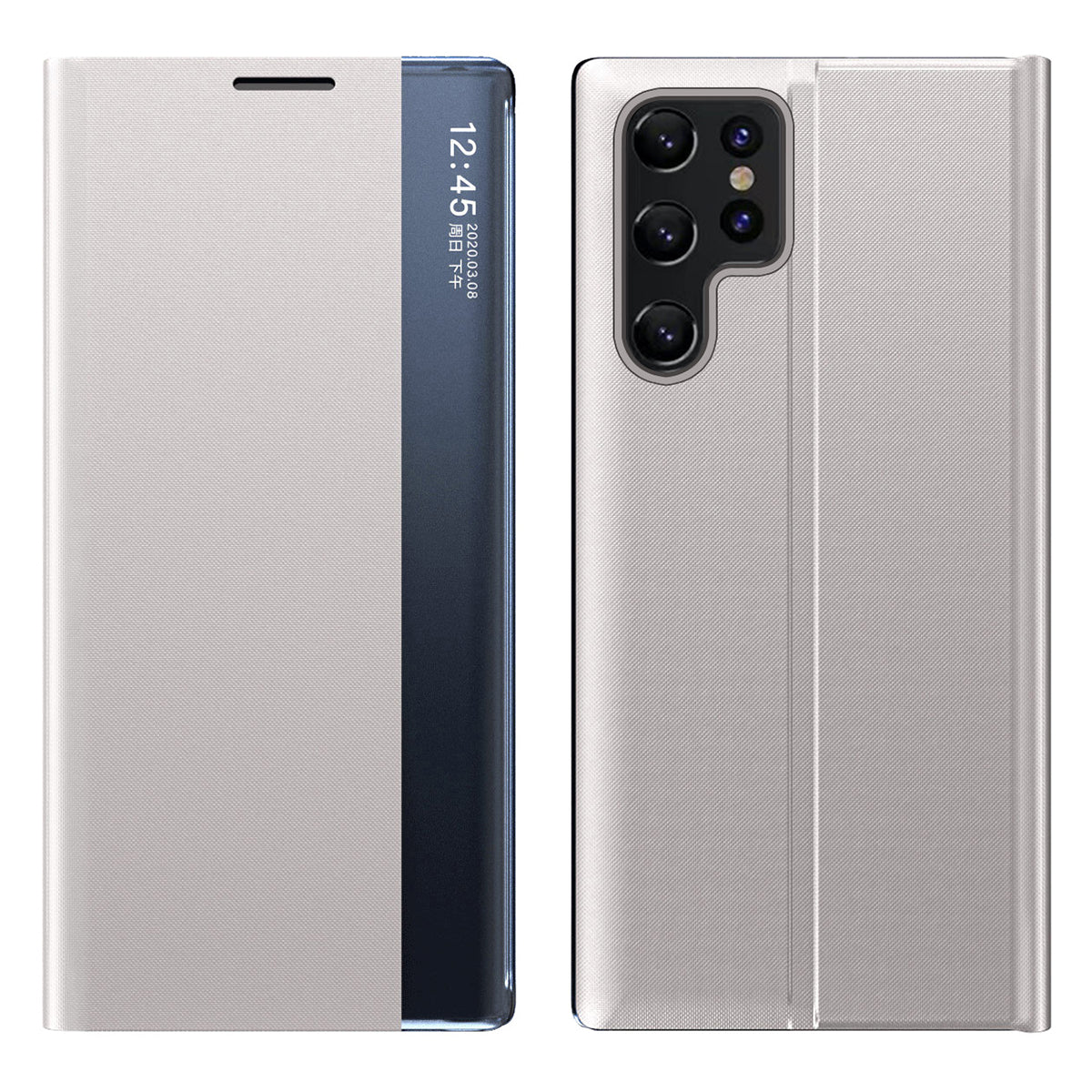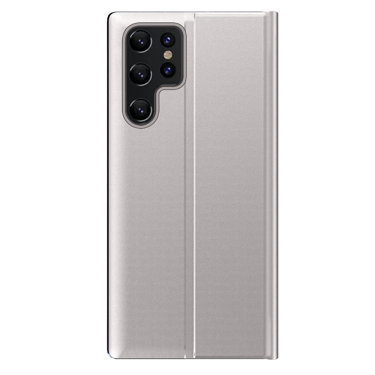 For Samsung Galaxy S24 Ultra Case PC + PU Leather View Window Flip Stand Phone Cover - Silver