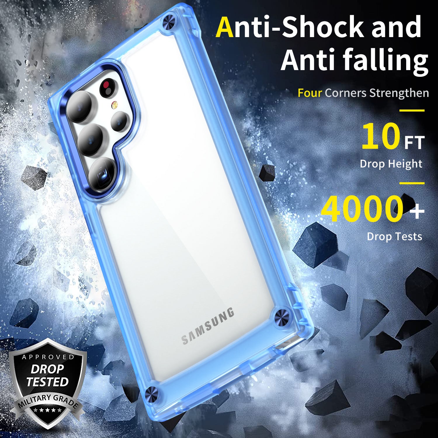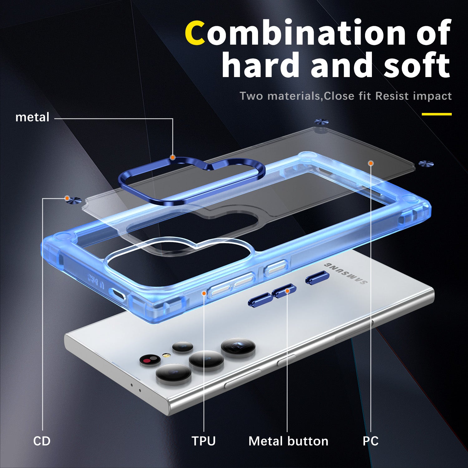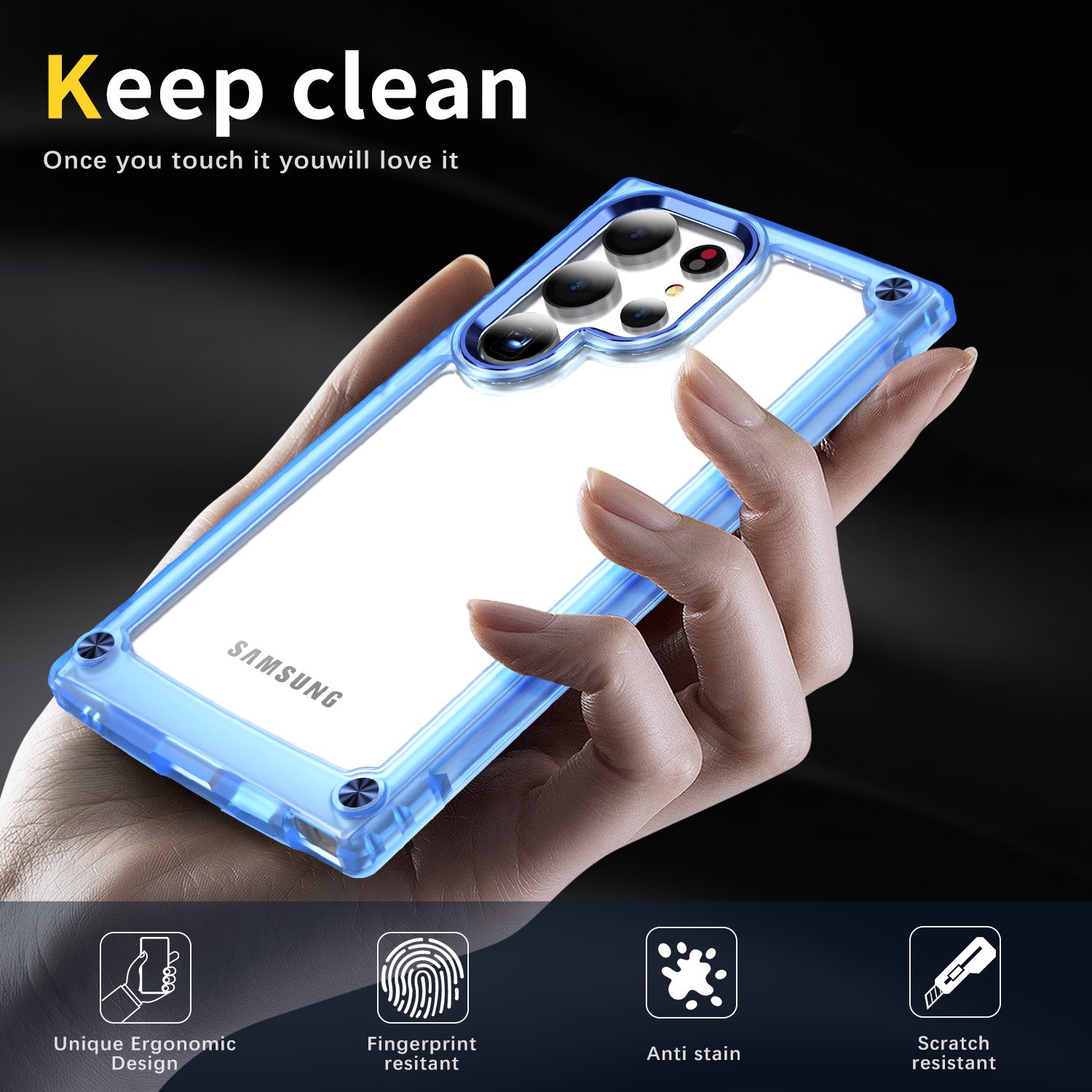 For Samsung Galaxy S24 Ultra Case PC+TPU Skin-touch Clear Phone Cover - Transparent+Blue