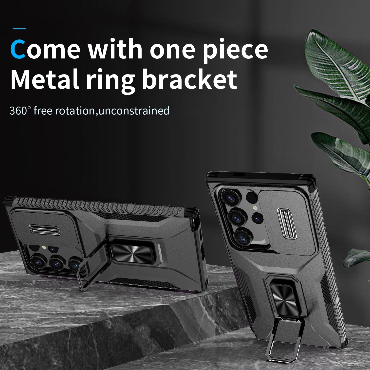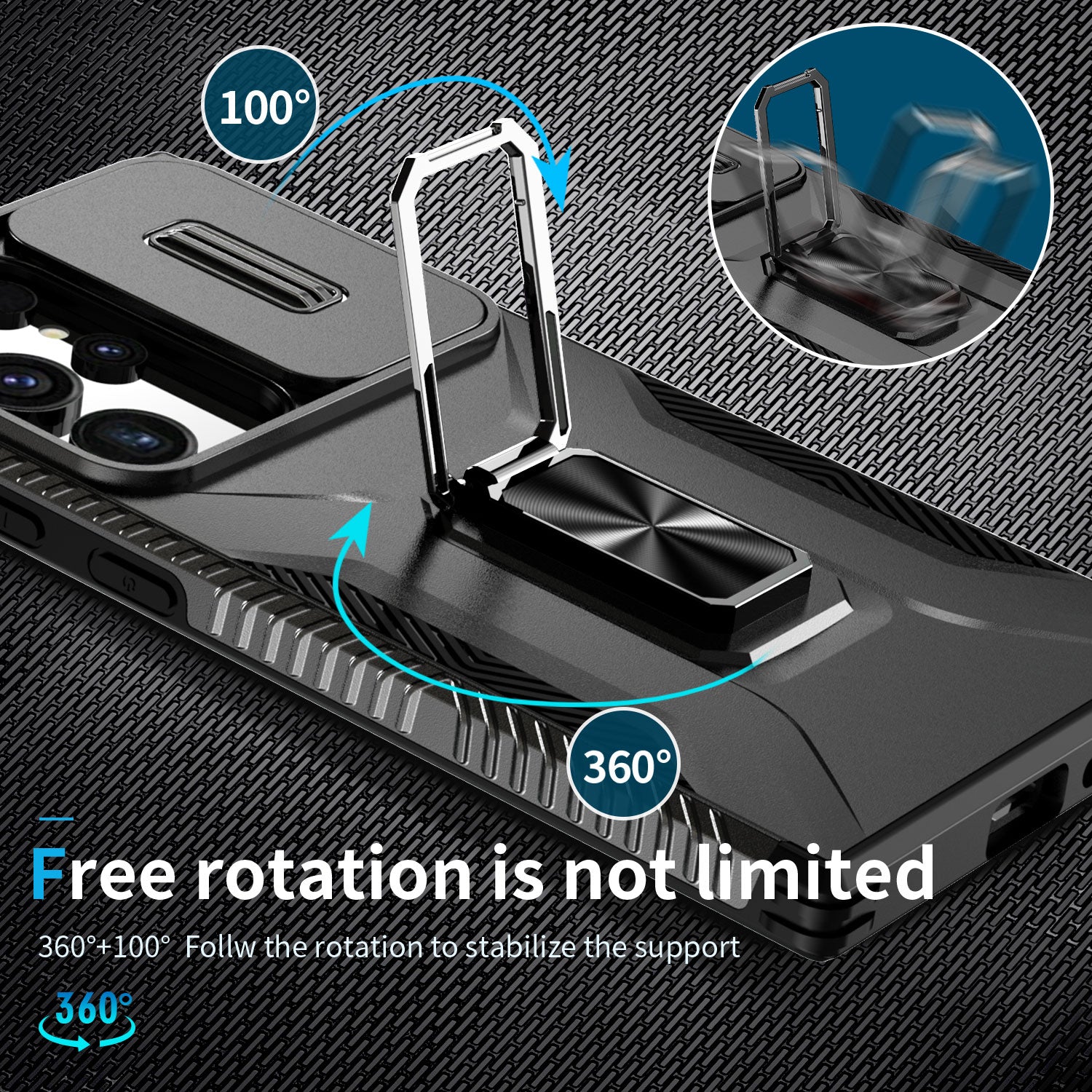- Designed with a metal ring kickstand for horizontal and vertical screen supports