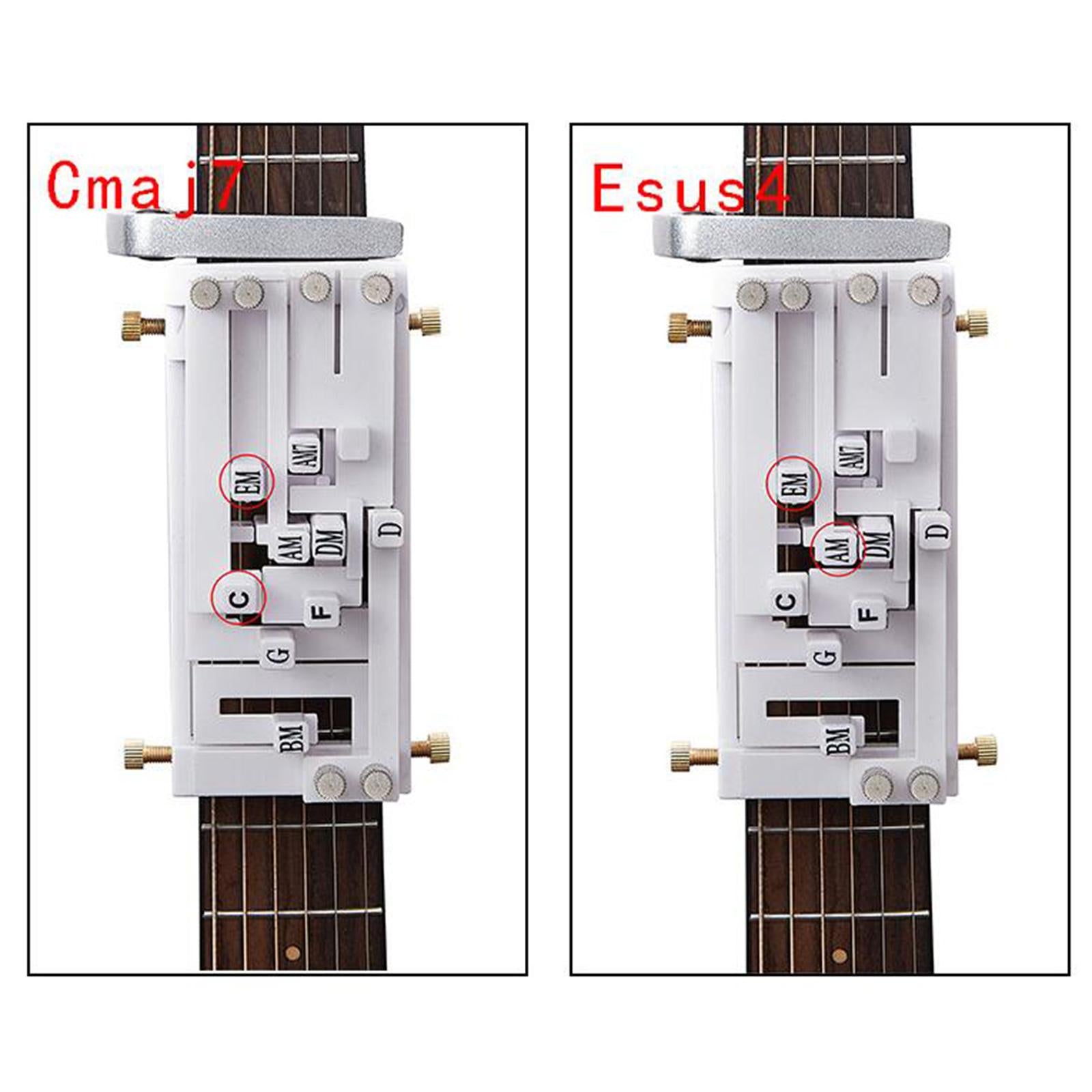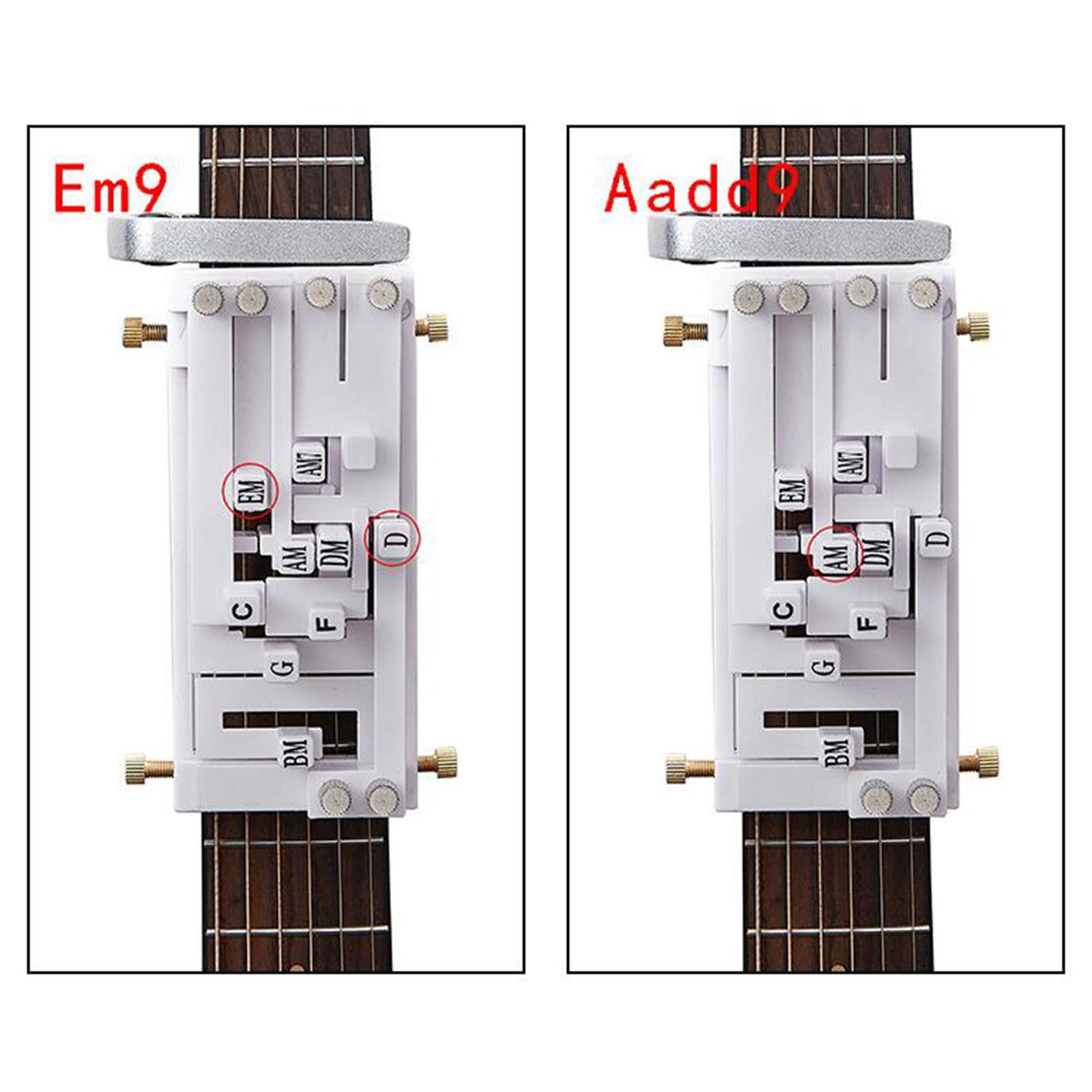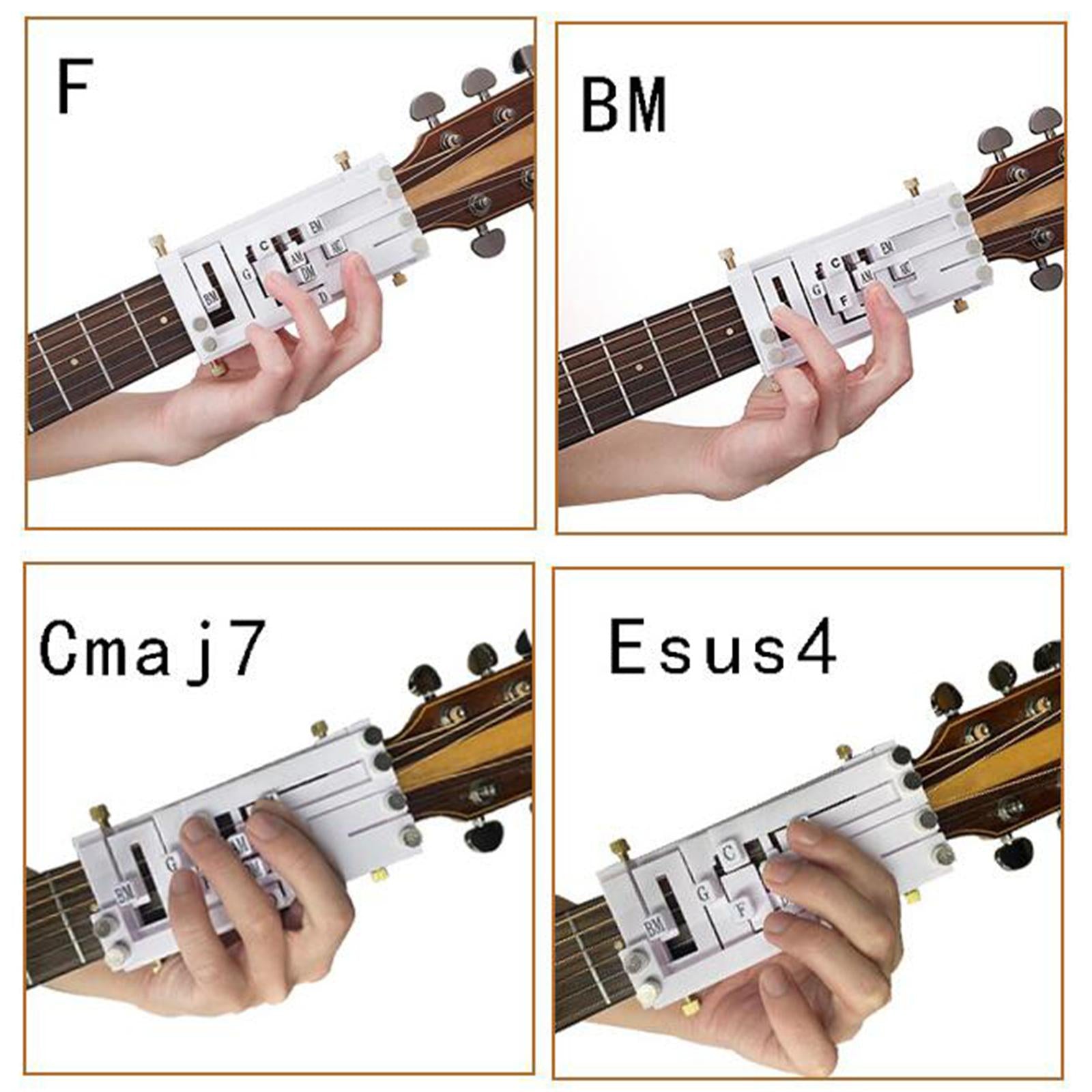 The guitar chord practice tool is easy to install in one clip. Hold down multiple strings with one click.