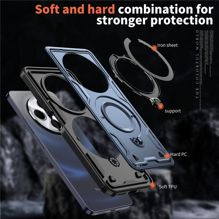 Kickstand Case for Xiaomi Poco C75 4G / Redmi 14R 5G / 14C 4G Compatible with MagSafe Military Protection PC+TPU Cover - Blue