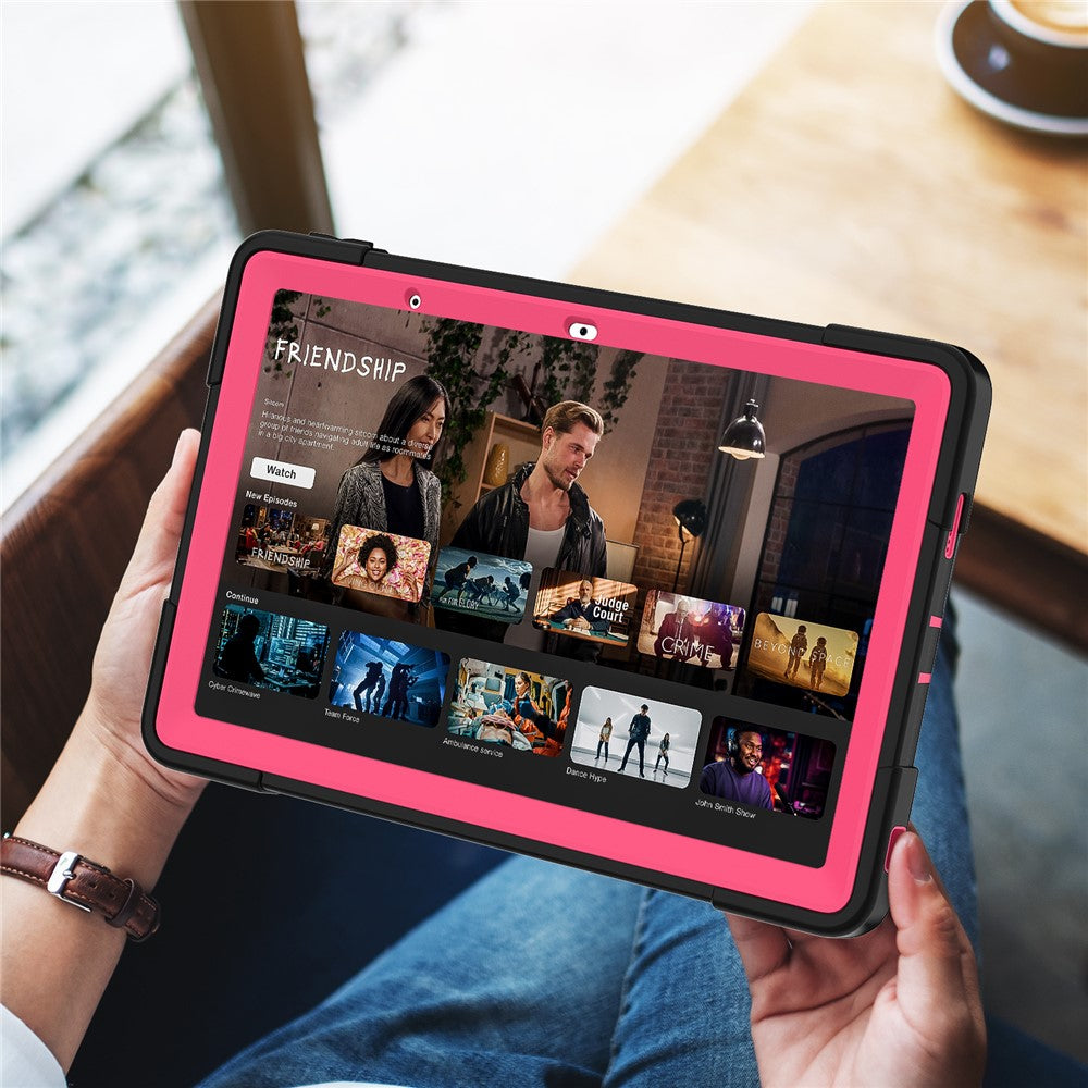 Kickstand Tablet Case for Lenovo Tab M10 5G , Robot Style Dual Color Silicone + PC Anti-drop Cover - Black / Rose Red