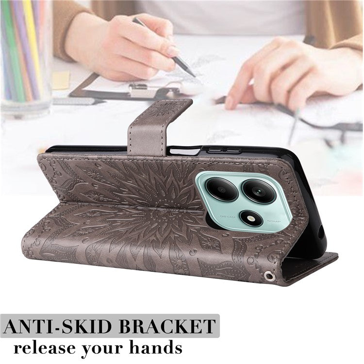 KT Imprinting Flower Series-1 For Xiaomi Redmi Note 14 5G Case Sunflower Leather Wallet Phone Cover - Grey