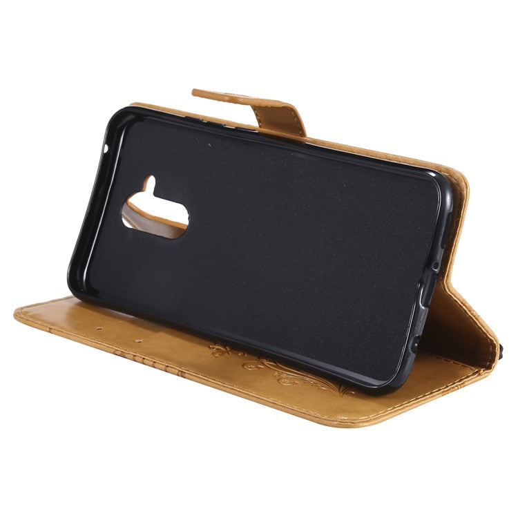KT Imprinting Flower Series-2 Imprint Butterfly Flower Leather Wallet Magnetic Stand Shell for Huawei Mate 20 Lite - Yellow