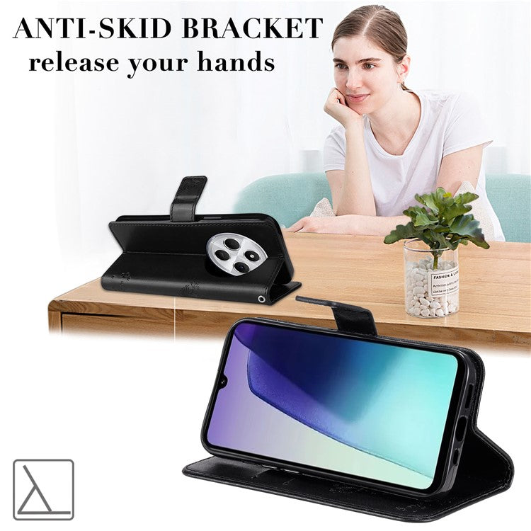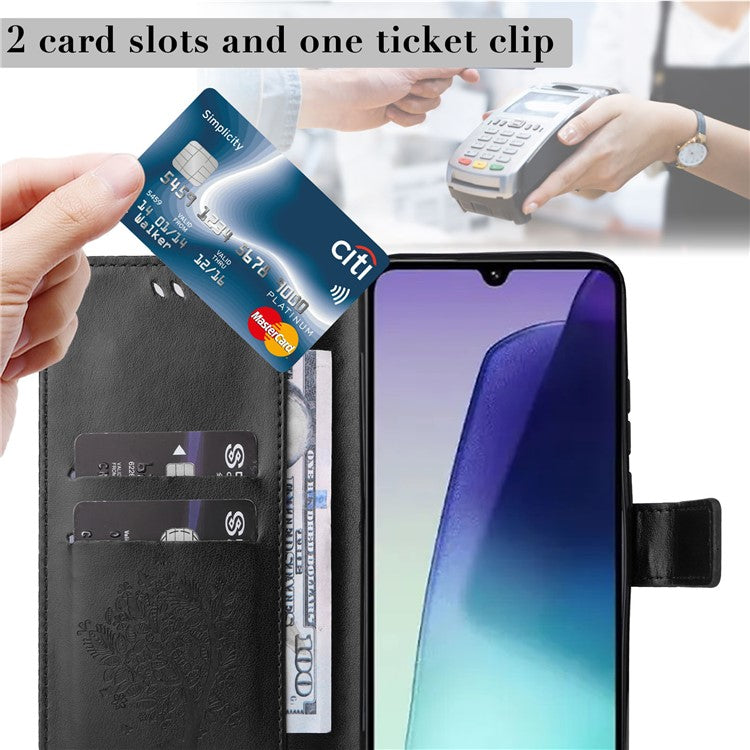 KT Imprinting Flower Series-3 For Xiaomi Poco C75 4G / Redmi 14R 5G / 14C 4G Case Cat Tree Pattern Flip Leather Phone Cover - Black