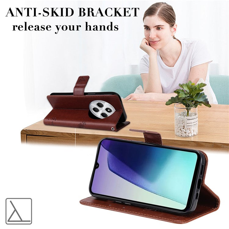 KT Imprinting Flower Series-3 For Xiaomi Poco C75 4G / Redmi 14R 5G / 14C 4G Case Cat Tree Pattern Flip Leather Phone Cover - Coffee