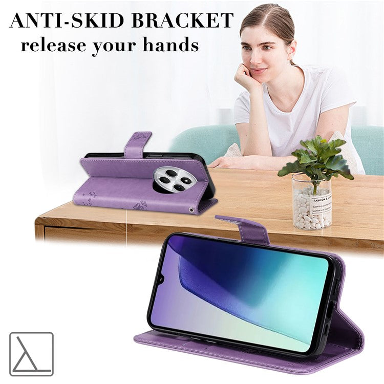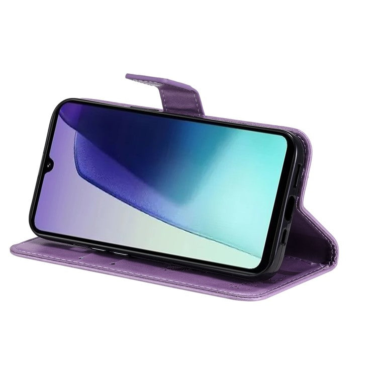 KT Imprinting Flower Series-3 For Xiaomi Poco C75 4G / Redmi 14R 5G / 14C 4G Case Cat Tree Pattern Flip Leather Phone Cover - Light Purple