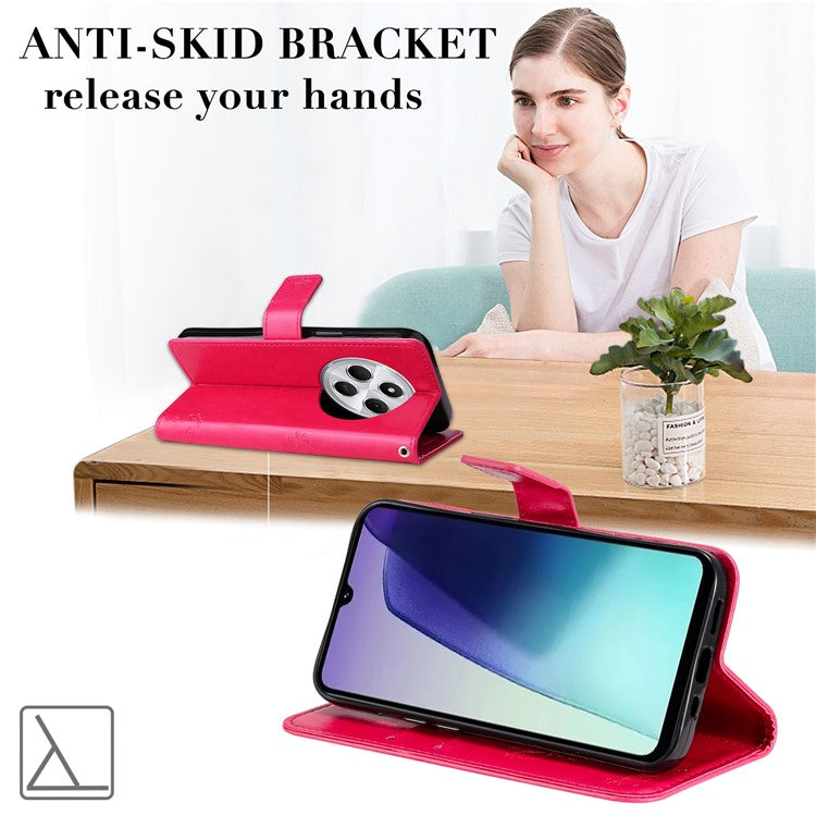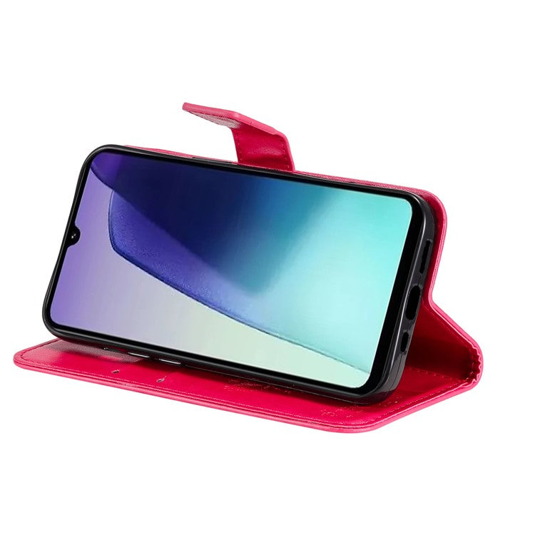 KT Imprinting Flower Series-3 For Xiaomi Poco C75 4G / Redmi 14R 5G / 14C 4G Case Cat Tree Pattern Flip Leather Phone Cover - Rose