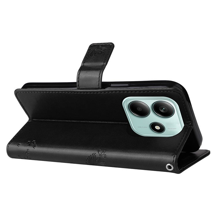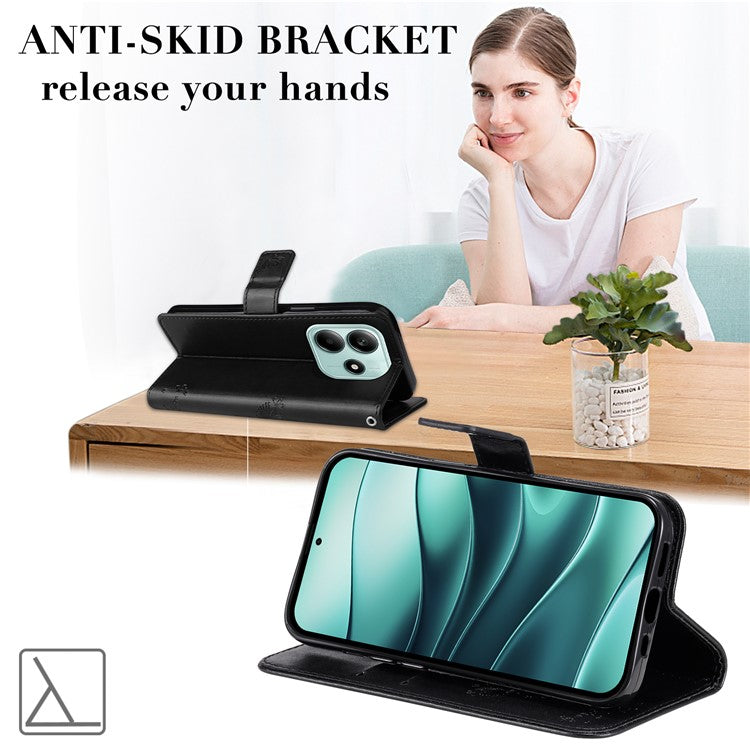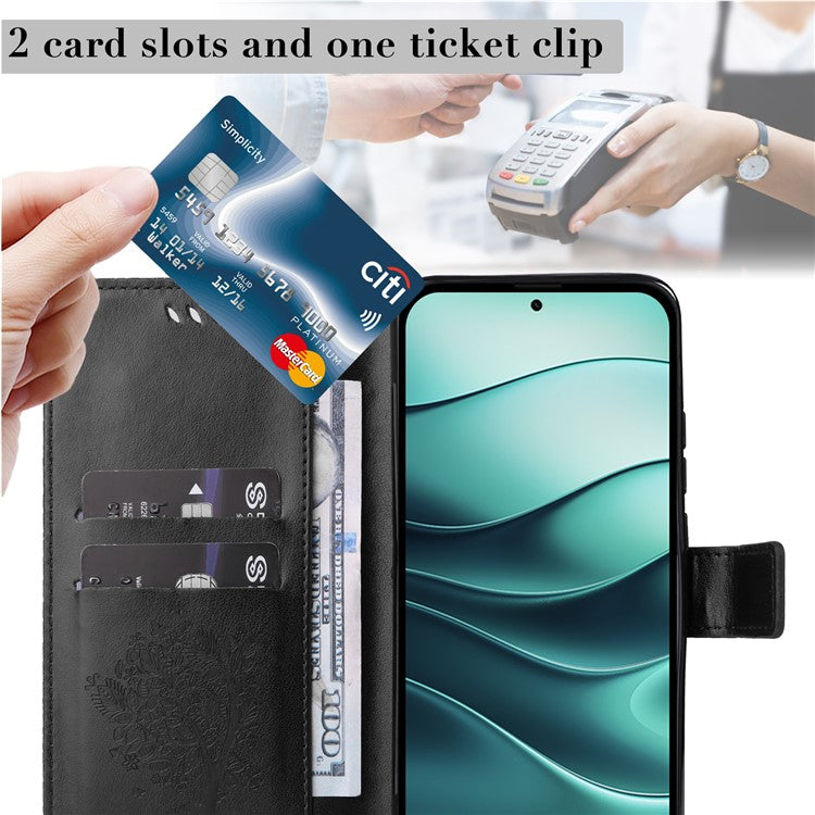 KT Imprinting Flower Series-3 For Xiaomi Redmi Note 14 5G Case Cat Tree Pattern Flip Leather Phone Cover - Black