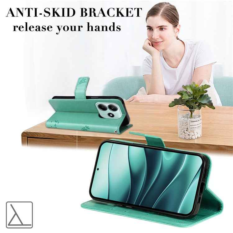 KT Imprinting Flower Series-3 For Xiaomi Redmi Note 14 5G Case Cat Tree Pattern Flip Leather Phone Cover - Green