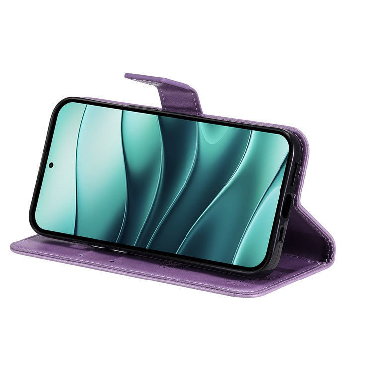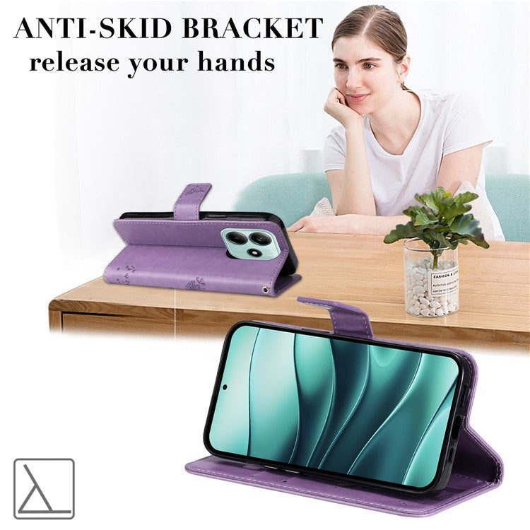 KT Imprinting Flower Series-3 For Xiaomi Redmi Note 14 5G Case Cat Tree Pattern Flip Leather Phone Cover - Light Purple