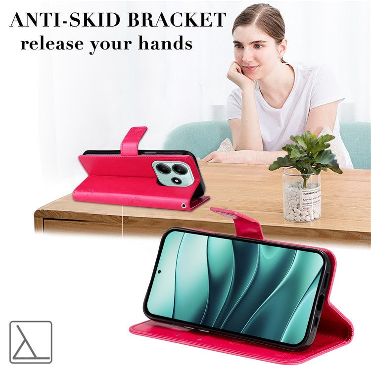 KT Imprinting Flower Series-3 For Xiaomi Redmi Note 14 5G Case Cat Tree Pattern Flip Leather Phone Cover - Rose