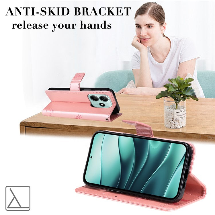KT Imprinting Flower Series-3 For Xiaomi Redmi Note 14 5G Case Cat Tree Pattern Flip Leather Phone Cover - Rose Gold