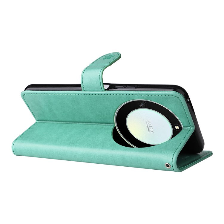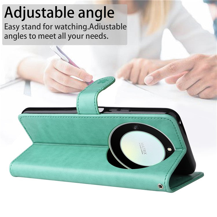KT Imprinting Flower Series-4 for Honor X40 5G / X9a 5G / Magic5 Lite 5G Shockproof PU Leather Phone Shell, Imprinted Cat Bee Flower Stand Wallet Phone Case - Green