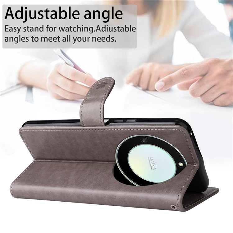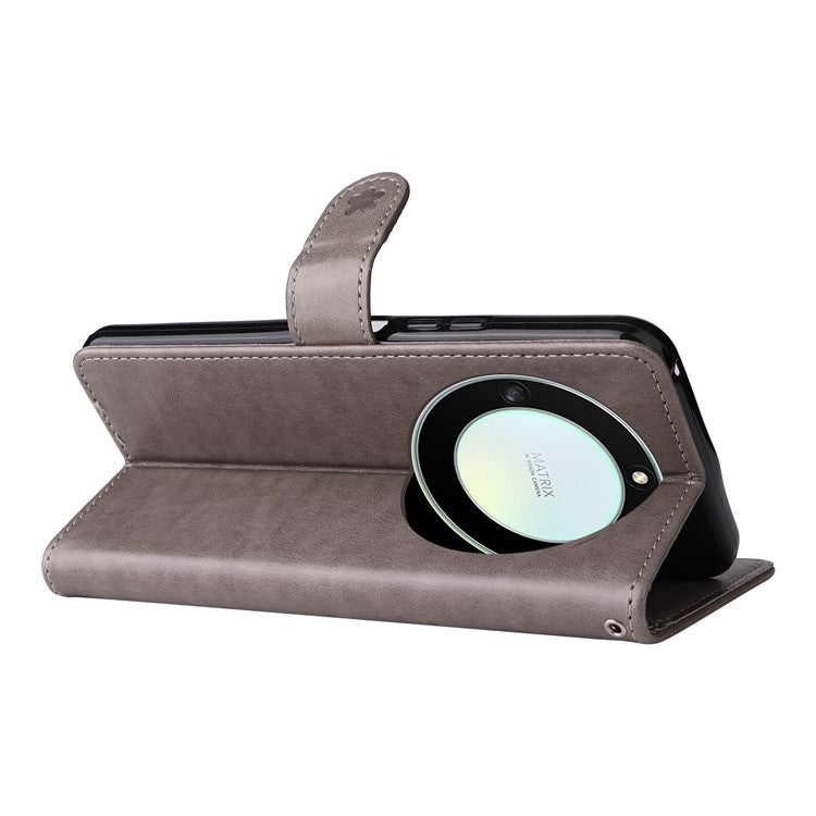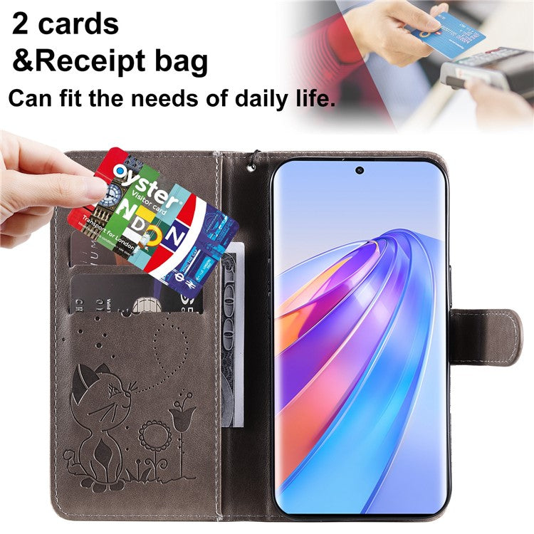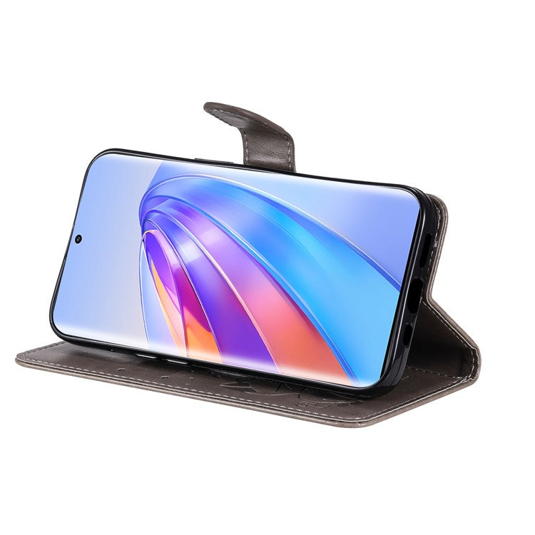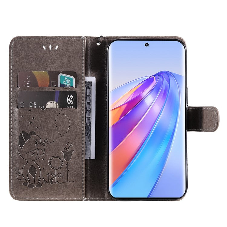 KT Imprinting Flower Series-4 for Honor X40 5G / X9a 5G / Magic5 Lite 5G Shockproof PU Leather Phone Shell, Imprinted Cat Bee Flower Stand Wallet Phone Case - Grey